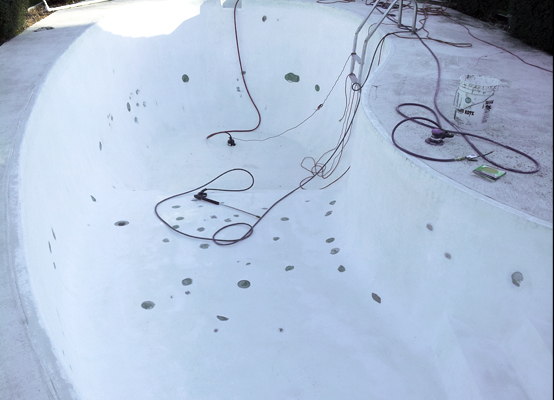 Patching The Pool Surface The fiberglass pool surface was sanded and all the cobalt spots were removed. The pool was then patched using a bondo material.
